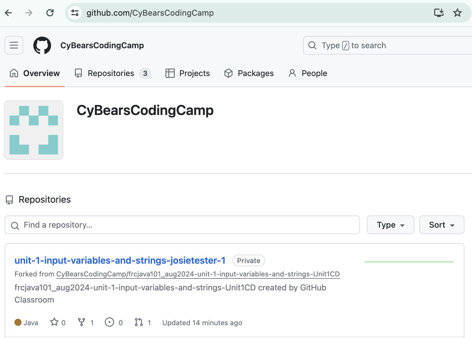 You can always find your Classroom repositories on your GitHub profile under Repositories, at http://github.com/CyBearsCodingCamp , or in GitHub Desktop under File → Open Recent.